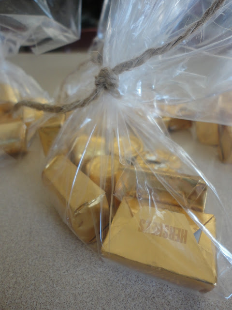 For the goody bags, I made my own labels, filled brown paper lunch sacks and tied them with jute rope to make them look like loot sacks.