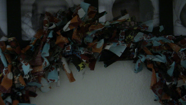 I found this tutorial for a rag wreath at Moda Bake Shop sometime last year. I bought the wreath frame and…..it sat for a year. First I couldn’t find fabric I liked. Then I thought I would make a Christmas one. But then Christmas passed, and I thought, okay, maybe a spring one. You get the picture. Finally, this summer, I decided to bite the bullet and pick out some fall fabric. I found these cute rolls of fabric at Hobby Lobby for $4.99. I love how they are fall colors, but not “fall fabric”- if you know what I mean.