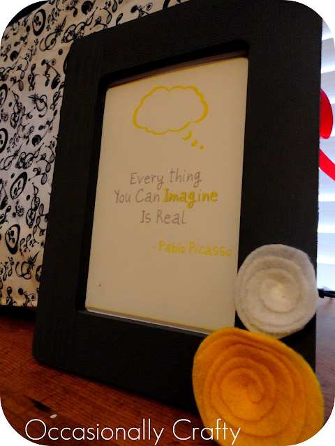 I mentioned last week I was feeling a little uninspired.  Well, I found a quotation that inspired me.  Pablo Picasso said “Every thing you imagine is real.”  Now, he was an amazingly creative and inspiring artist.  I’m a crafter- I make a lot of things that are my own version of something someone else dreamed up.  Still, they are my creations.  I put my own variables on pretty much everything, and from time to time, even come up with my own creative ideas.  What I create is REAL.  And I love sharing it with you- just for fun.  If it inspires someone else to create along the way, then that is just a bonus! I think that quote can be applied for more than just arts and crafts.  It is applicable to life.  We shouldn’t be afraid to dream big- those dreams are REAL and we can reach them. How does this quote inspire you? I’m offering this as a free printable for you- simply right-click the image below (this is created as a 5×7, so it would be perfect in a frame in your creative space!)  Save it to your computer or print it.