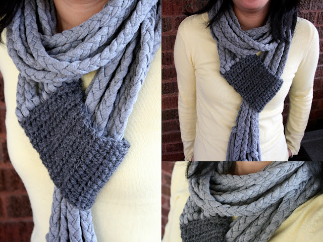1. This Crochet and Braided T-shirt Scarf by One Dog Woof is so cute! It looks both cozy and fashionable. Click over for the tutorial!