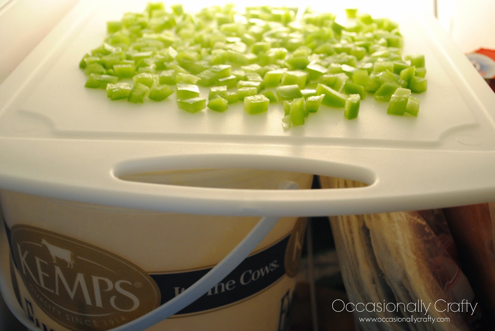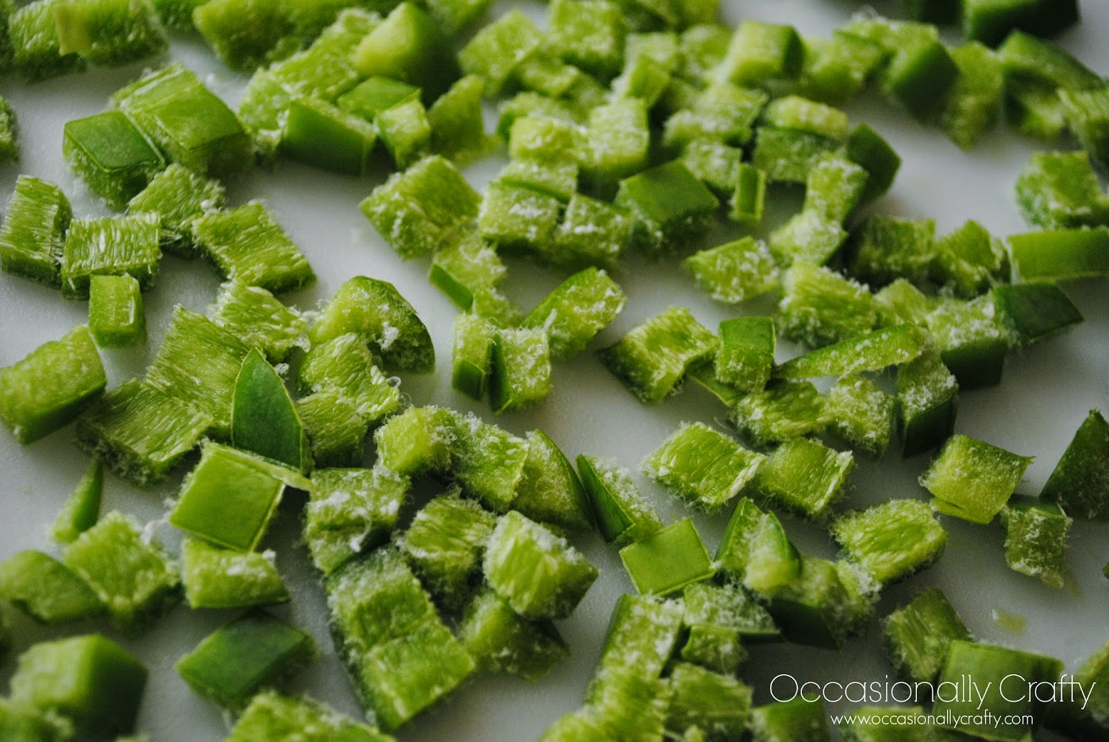 Last: Place in freezer bags and pull what you need out of it, instead of one big frozen clump of peppers!