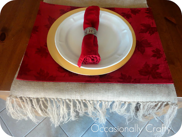 It was simple.  It took a little time to unravel the edges for the fringe, but I just love how it looks. I think the fringe gives it an elegance and a richness that the burlap alone didn’t have.