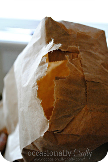 Then I stuck a half cup of popcorn kernels in a paper bag, folded the top over a few times and stuck it in my microwave. A few bad things happened: One- it burned, and Two- the bag burst open at the bottom! Ack!