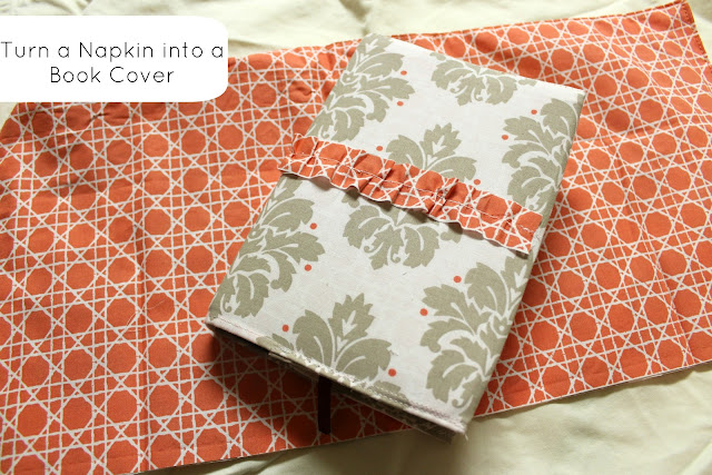 2. Decide how long you want the ends to fold over. Multiply that by 2 and add it to the length in #1. For example, my cover length was 11 1/4 inches. I wanted my flaps to come over 3 1/2 inches. 3.5×2= 7 +11.25= 18.25 inches total. BEFORE YOU CUT- Now, I got lucky. My napkin was 18.5 inches wide, so I didn’t have to cut the beautiful finished edges off. If you have to, you’ll need another 1/2 inch for any hem allowance. Most likely you can definitely keep one finished edge, so if you have to cut the other one off, make sure you leave 1/2 inch extra so you can hem it.