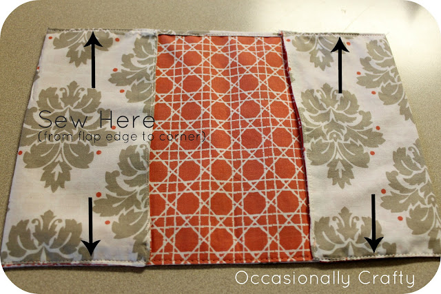 6. For the flaps. Hem any unfinished edges by rolling over 1/4 inch, pressing, then rolling over another 1/4 inch. Sew in place.