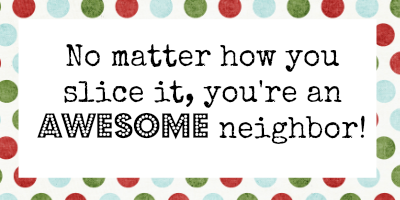 I attach a gift card with this note, which you can download print out below: “No matter how you slice it, you’re an awesome friend/neighbor/teacher ”