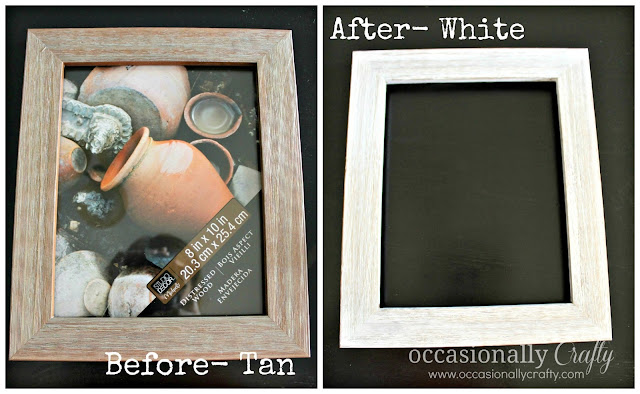 1. If desired paint your frame. I loved the distressed look of this frame. The tan one cost $9.99, and the white cost $19.99. What?!? I bought the tan and added some white paint, rubbed on with a paper towel, then sanded smooth. That’s an easy $10 savings! (Plus I used a 40% off coupon to save even more.)