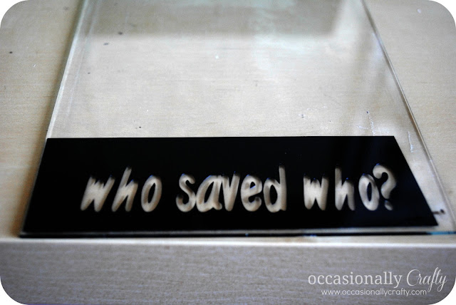 Now, I knew that this would be really faint on the frame, so I put a strip of colored card stock underneath (i.e. in the picture frame on top of the picture) so that it would pop.