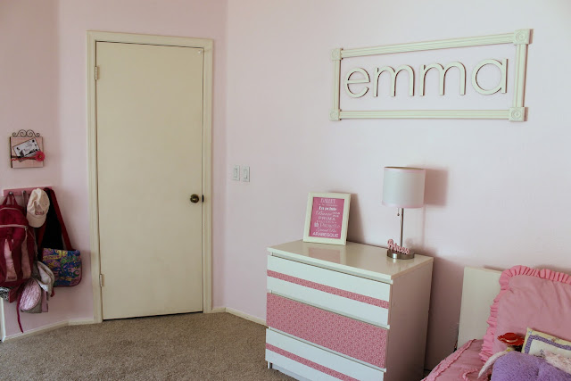 Next, I finished the plaque I made at The Glitter Academy, which I showed you here, and got it hung on the wall opposite her bed.