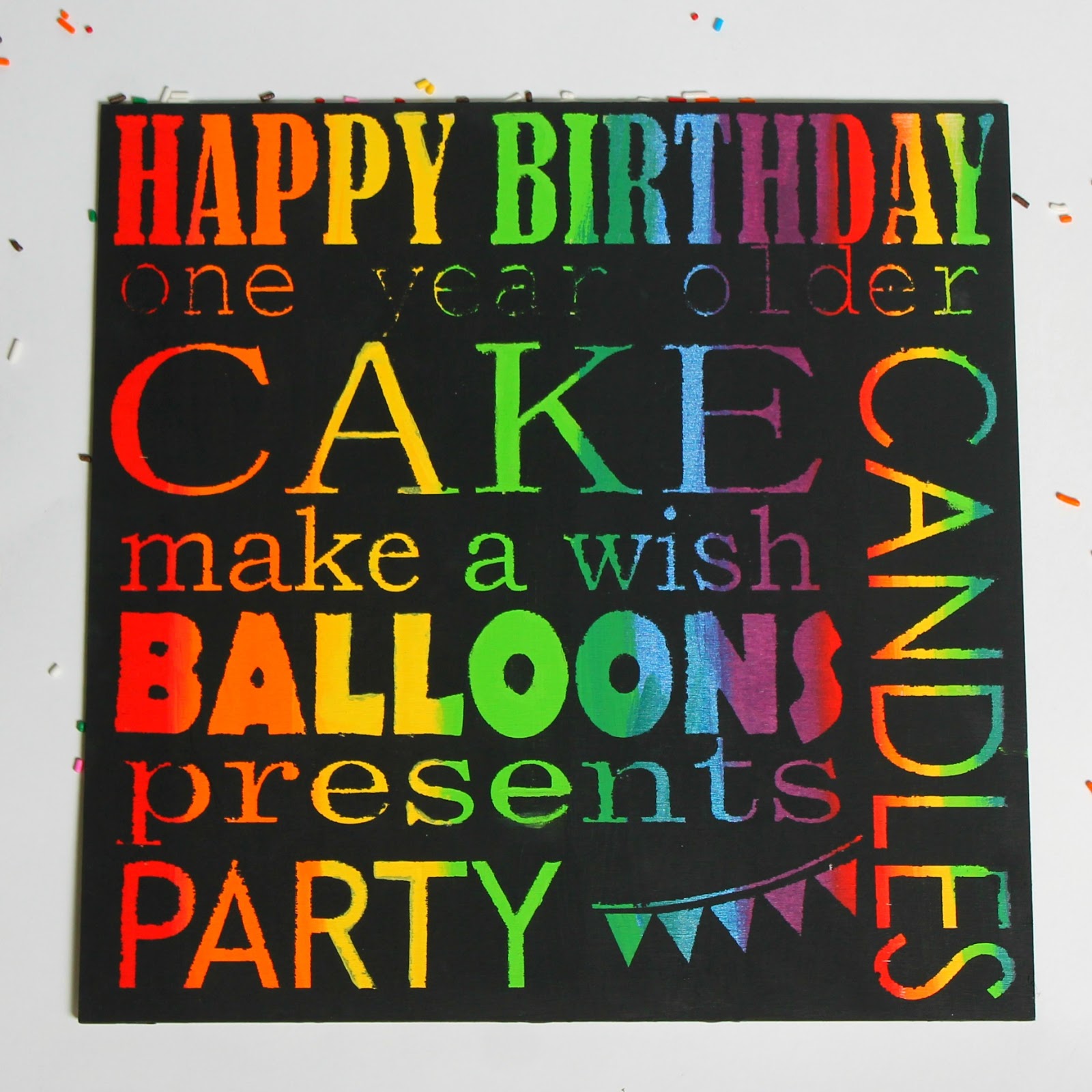 2. Paint your board in rainbow colors. I just kind of eyeballed it based on the layout of my words. There is not right way to do it- just paint how you feel like painting.