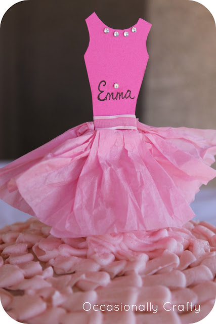 I also made this little paper dress cake topper, inspired by this one at Composing Hallelujahs. I just made it a little shorter so it looks like a tutu. Love it!