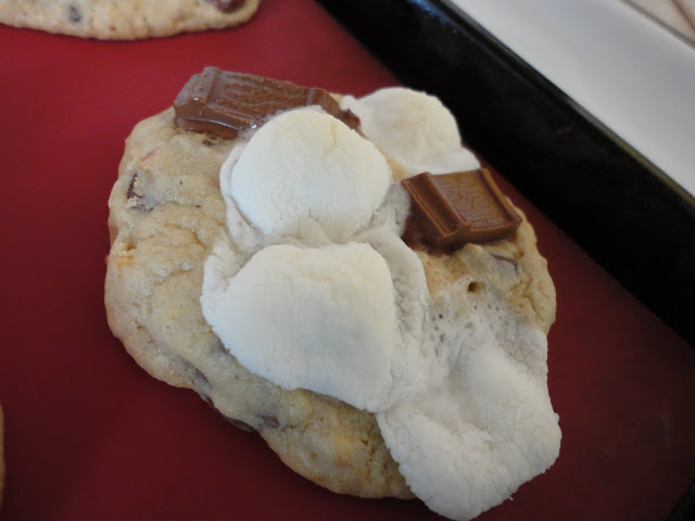 I’ve been stuck in a cookie rut- making the same five recipes over and over. So, of course, I went online for inspiration, and found these amazing Smore Cookies at Cookie Madness. I made them this afternoon, since we have church at 9:00 am, as there is no way I’m baking cookies AND getting three kids and myself ready and out the door that early! These cookies are delicious! It is like eating a freshly toasted S’more, only a little less messy! Try them- I really think you’ll love them!