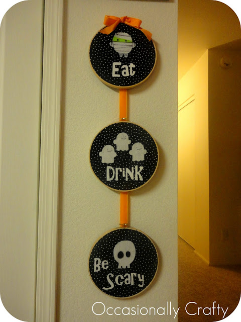 First off, I am guest posting at Love and Sugar Kisses today. Go see how to make this Halloween Embroidery Hoop Wall Hanging!